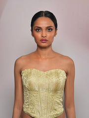 Blending versatility and drapability, this all-season  Blonde Yellow Tissue saree features delicate hand-embroidery details lending a minimalist appeal for summer. Pair the lightweight tissue with a statement blouse and add a personal touch to your unique style.Â