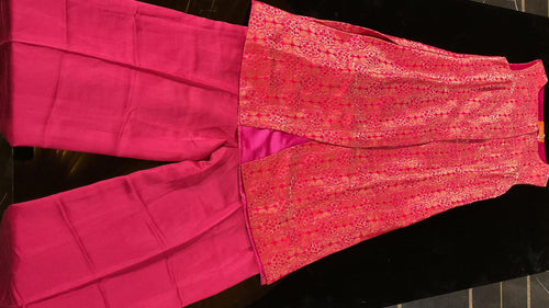 Home / ALL FABRICS - READY TO WEAR / Handwoven Hot Pink Waistcoat Set