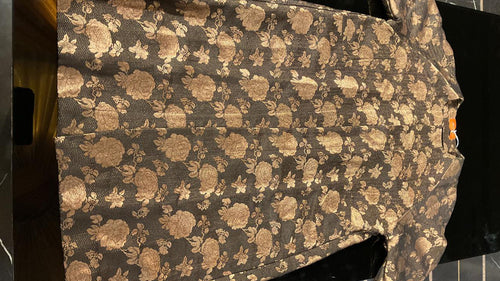 Our Midnight Black Jacket Set is handwoven in Banarasi embossed technique and crafted in the finest satin silk. The fabric offers a balance of drape and structure, giving the jacket a refined silhouette.