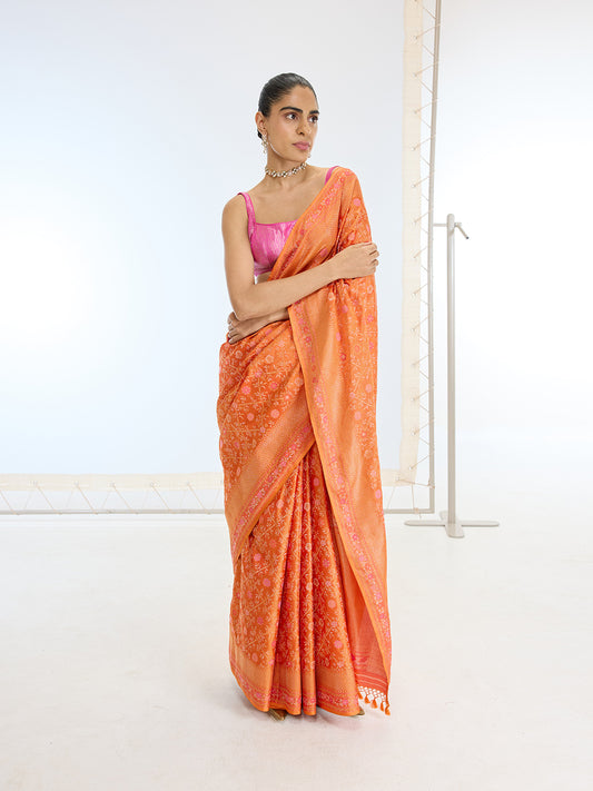 Ochre Twiggy Bloom Saree
