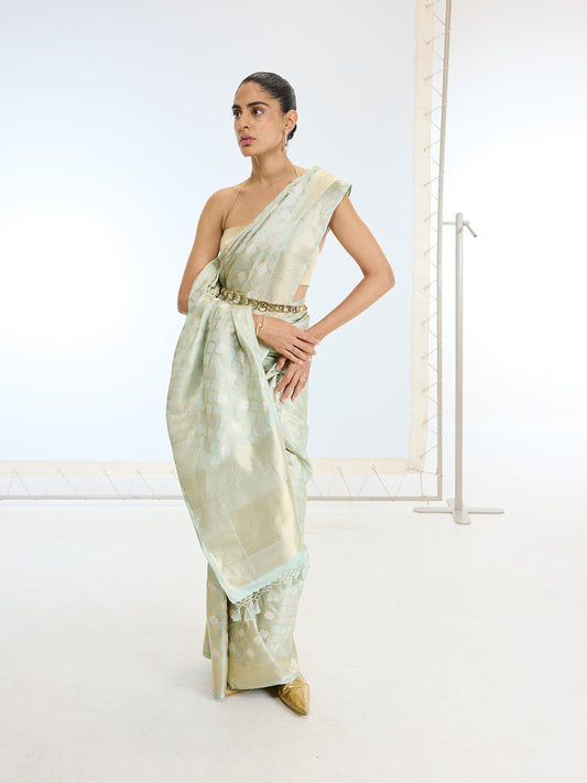 Handwoven Real Zari Pista Silk Saree