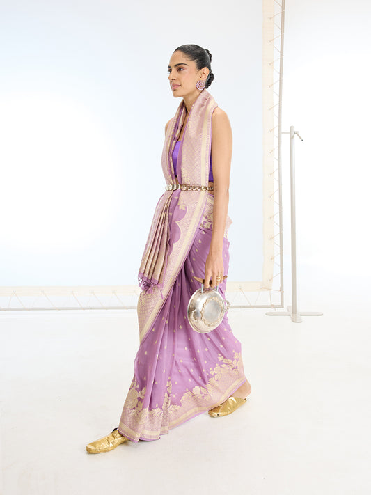 Lilac Pin Stripe Saree