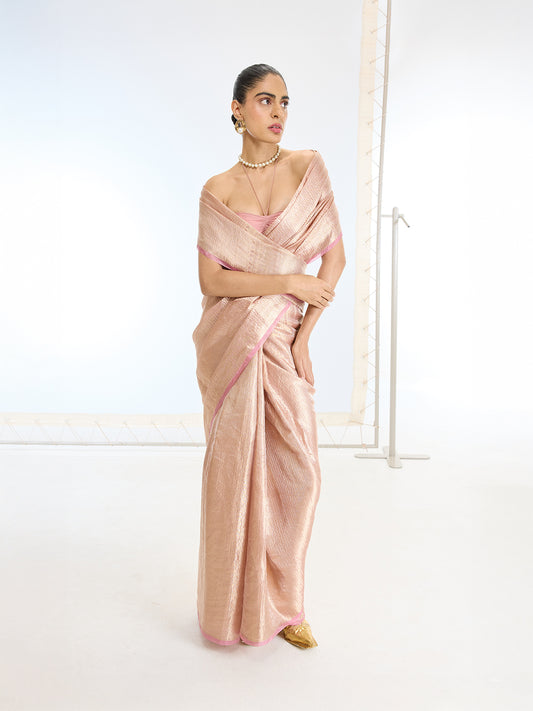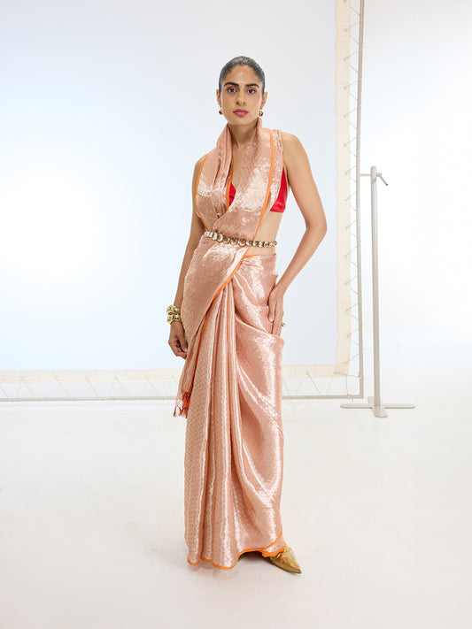 Handwoven Peach Tissue Saree
