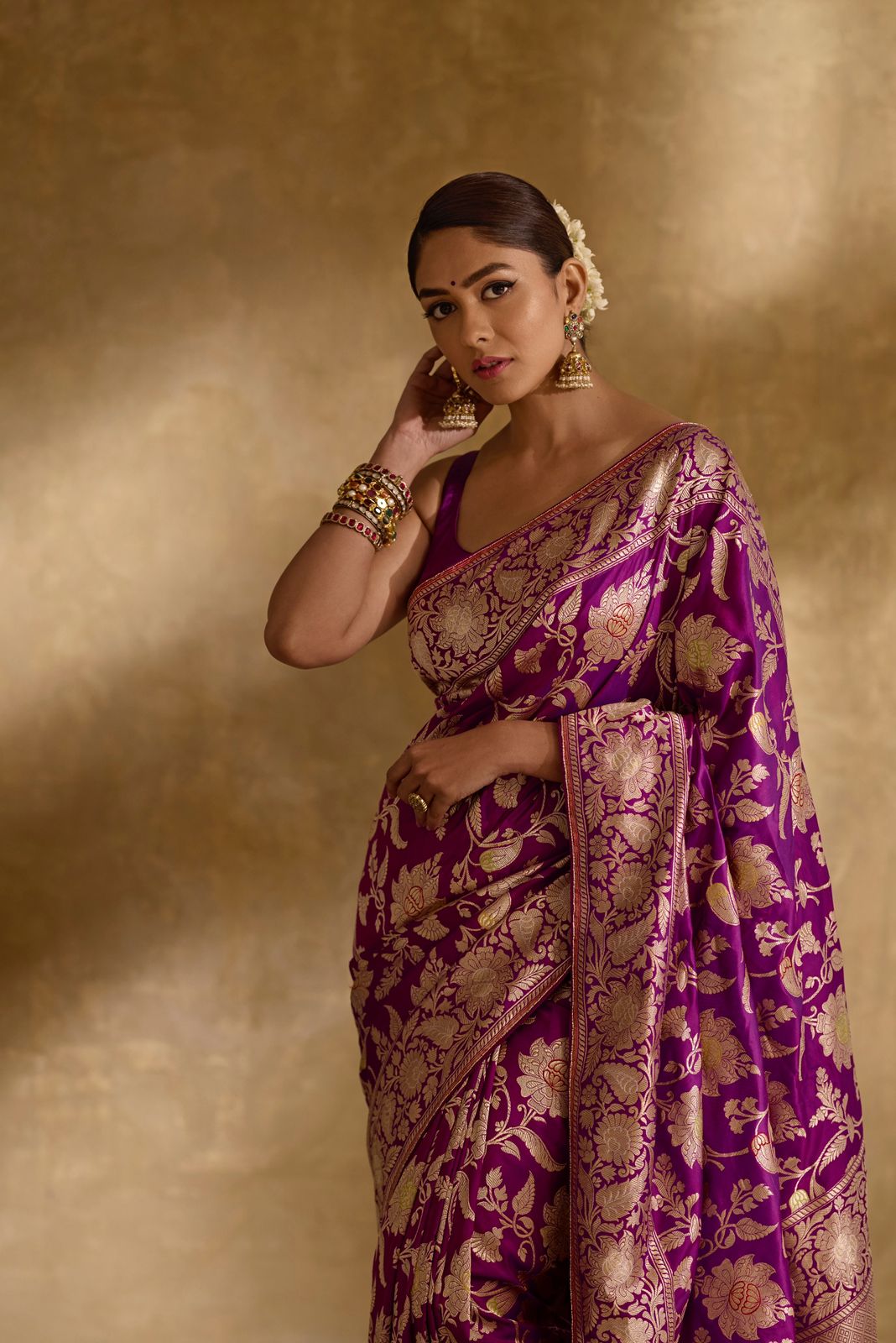 Mrunal Thakur in Handwoven Purple Silk Saree