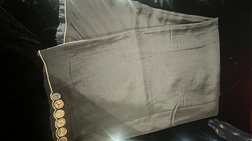 Handwoven Black Mashroo Silk Saree With Gold Button Detailing
