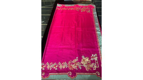 Handwoven in the Kadhwa Banarasi technique and crafted from the softest, most fluid satin silk, this rose pink masterpiece features intricate motifs inspired by Oriental culture, allowing for endless styling possibilities.