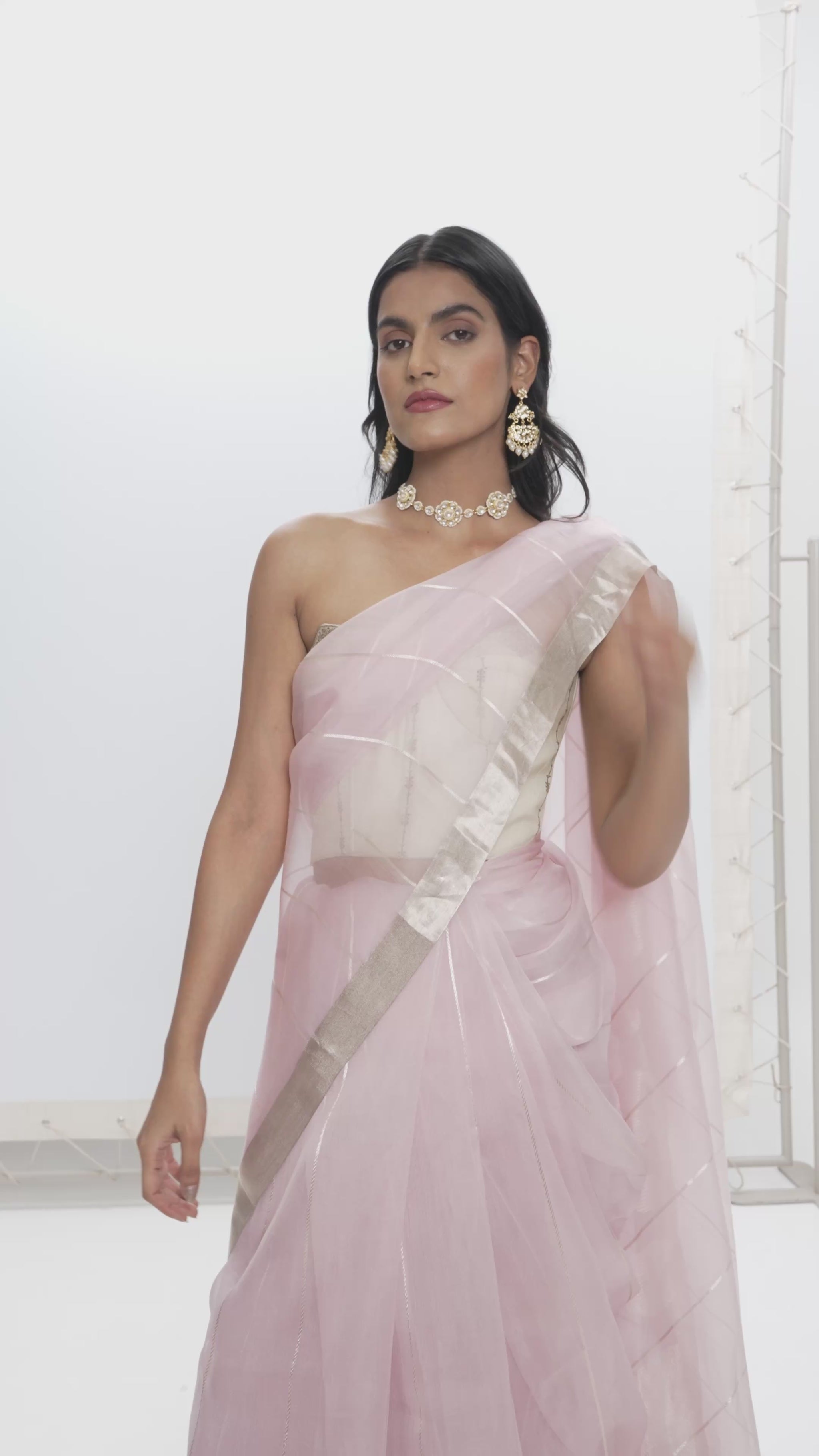 Saree pleats are neatly stitched in place for quick and easy draping.