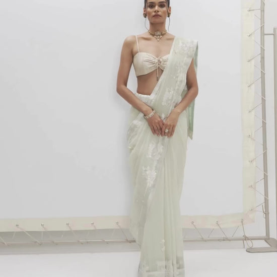 Saree pleats are neatly stitched in place for quick and easy draping.