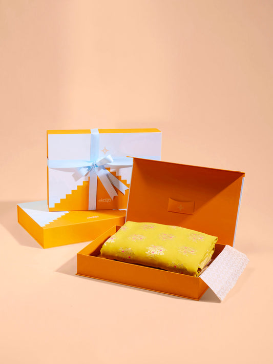 Handwoven Real Zari Mustard Silk Saree