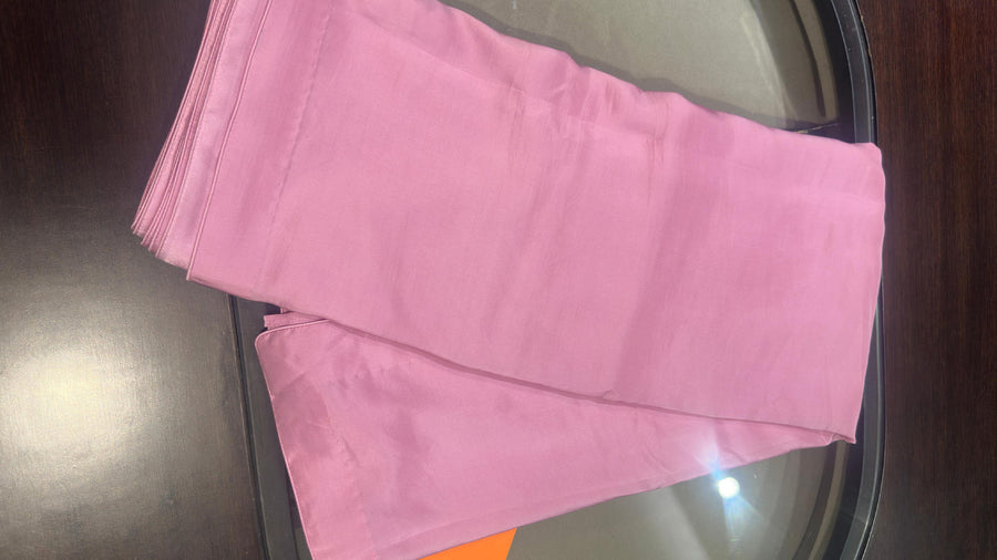 An easy to drape, transeasonal sari in blush pink that can seamlessly flow from your everyday outfitting to evenings of celebration. Play up the lightweight silk with a statement blouse or a tonal cape for a striking ensemble that commands attention. The sari comes with unstitched blouse fabric. To purchase the blouse as seen on the model, or any other customisations, please get in touch with our style advisors at +91 95606 50774.