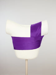 Our purple handwoven saree from Ekaya's fall/winter bridal collection is crafted in pure Kora silk and comes hand embroidered with intricate Zardozi, Cutdana and Aari detailing inspired from filigree patterns seen in Baroque architecture. To complete the ensemble, we recommend adding a statement belt and some gold danglers.