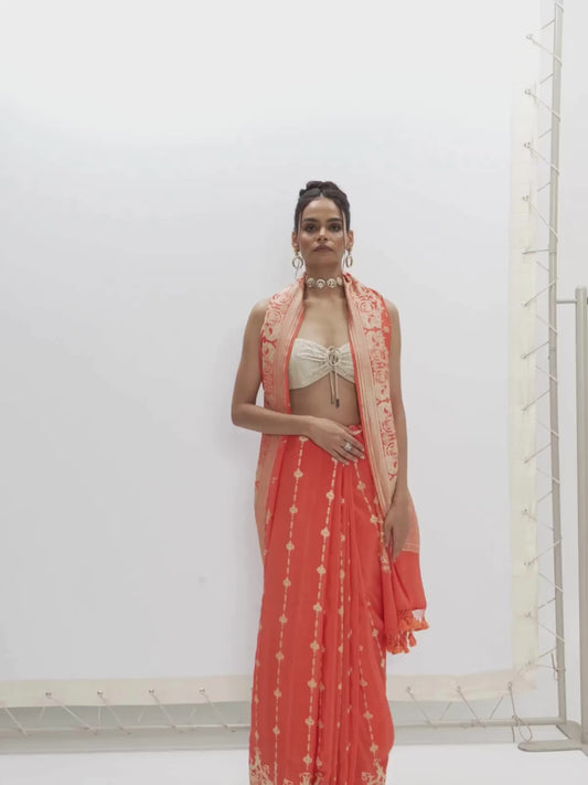 Explore our vibrant edit of orange sarees, from lustrous orange silk sarees to lightweight orange georgette sarees and dreamy drapes. Whether you’re shopping for a festive function or a beachside celebration, find your perfect orange saree that’s bold, bright, and beautifully made.