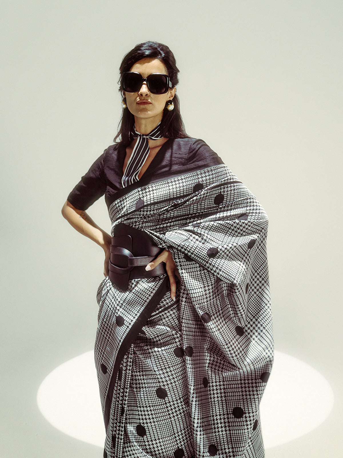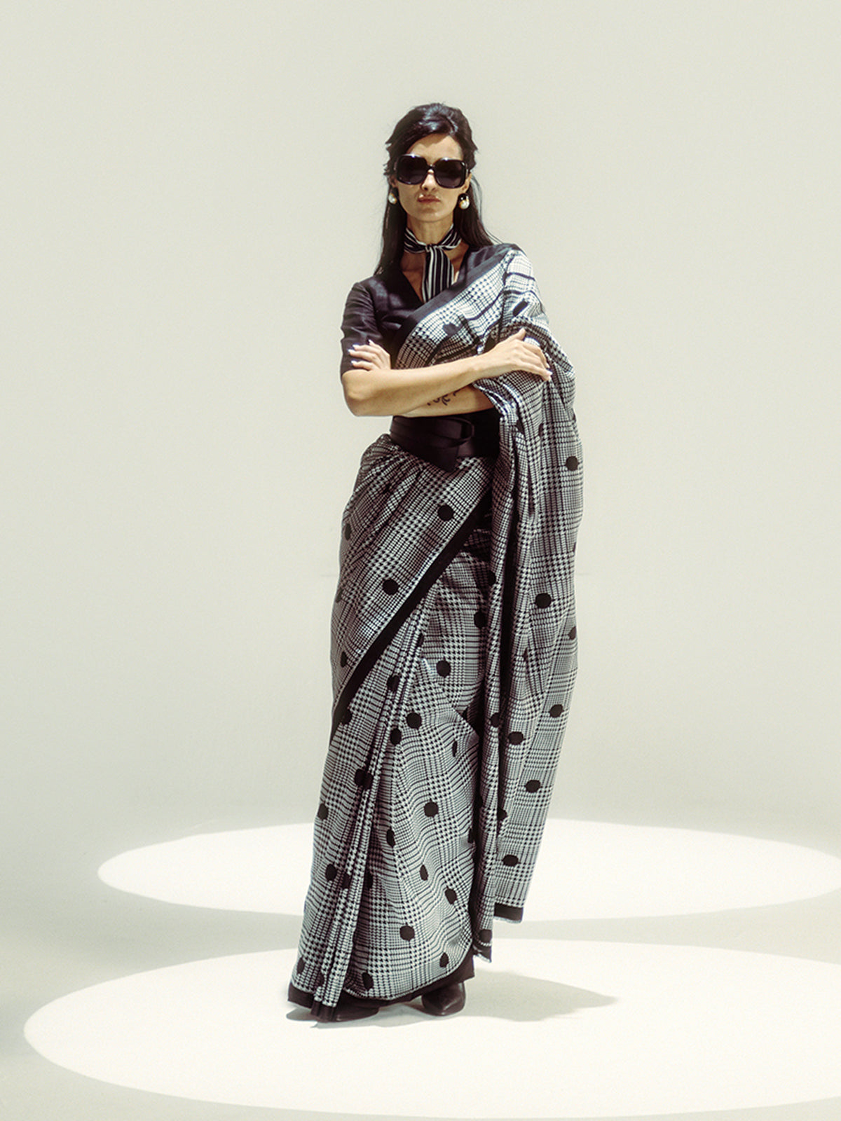 Reimagining sarees through the lens of a stylist and a textile connoisseur, our recent collection reimagines traditional Banarasi designs with the classic plaid and the iconic polka dot pattern.