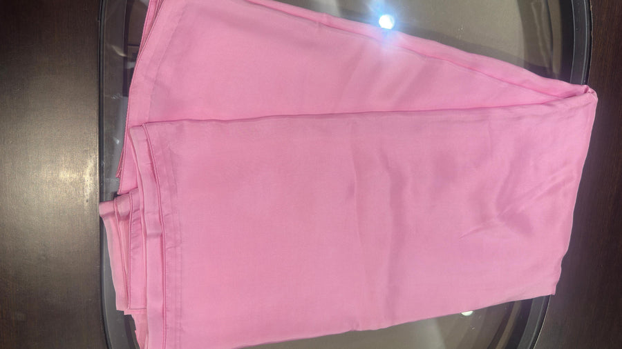 An easy to drape, transeasonal sari in blush pink that can seamlessly flow from your everyday outfitting to evenings of celebration. Play up the lightweight Organza with a statement blouse or a tonal cape for a striking ensemble that commands attention. The sari comes with unstitched blouse fabric. To purchase the blouse as seen on the model, or any other customisations, please get in touch with our style advisors at +91 95606 50774.