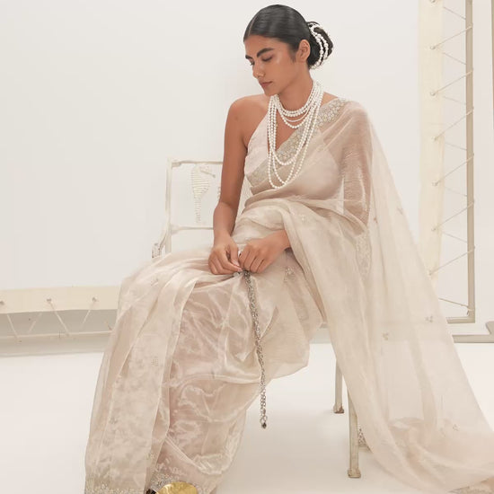 - Craft: Handwoven Crushed Silk Tissue with Pearl Hand Embroidery