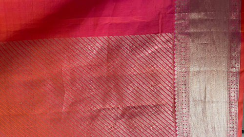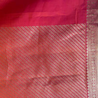 This handwoven red Kanjivaram saree, crafted in pure silk, is a true collector’s piece. It carries a soft, luminous sheen that beautifully enhances the fabric.