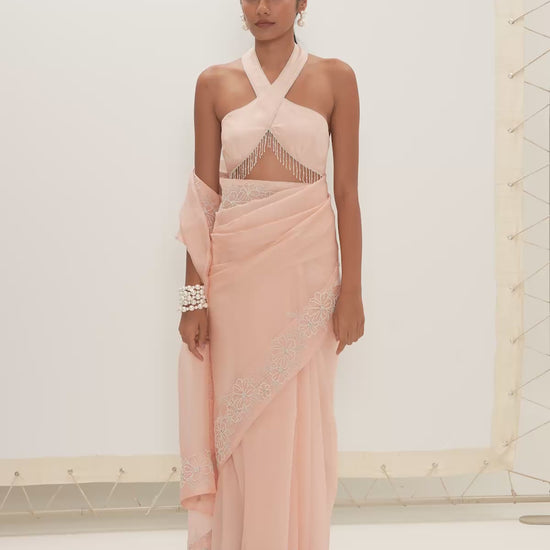 Saree pleats are neatly stitched in place for quick and easy draping.
