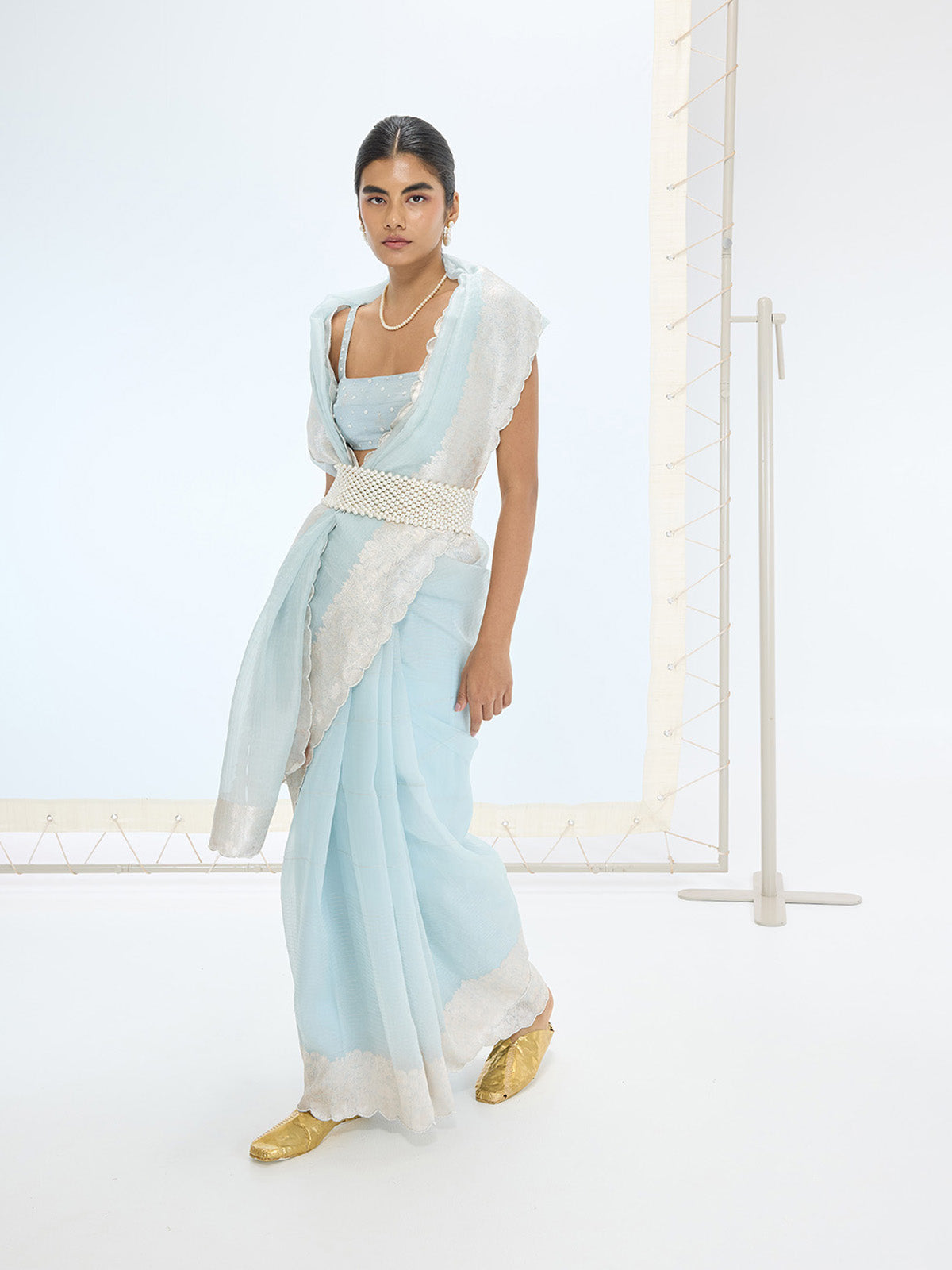 Home / Shop By - Blue / The Blake Saree in Ice Blue
