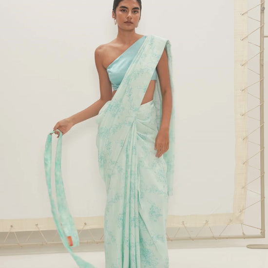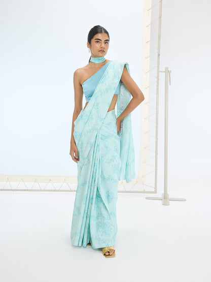 Home / Shop By - Blue / The Ruby Saree In Turquoise Blue