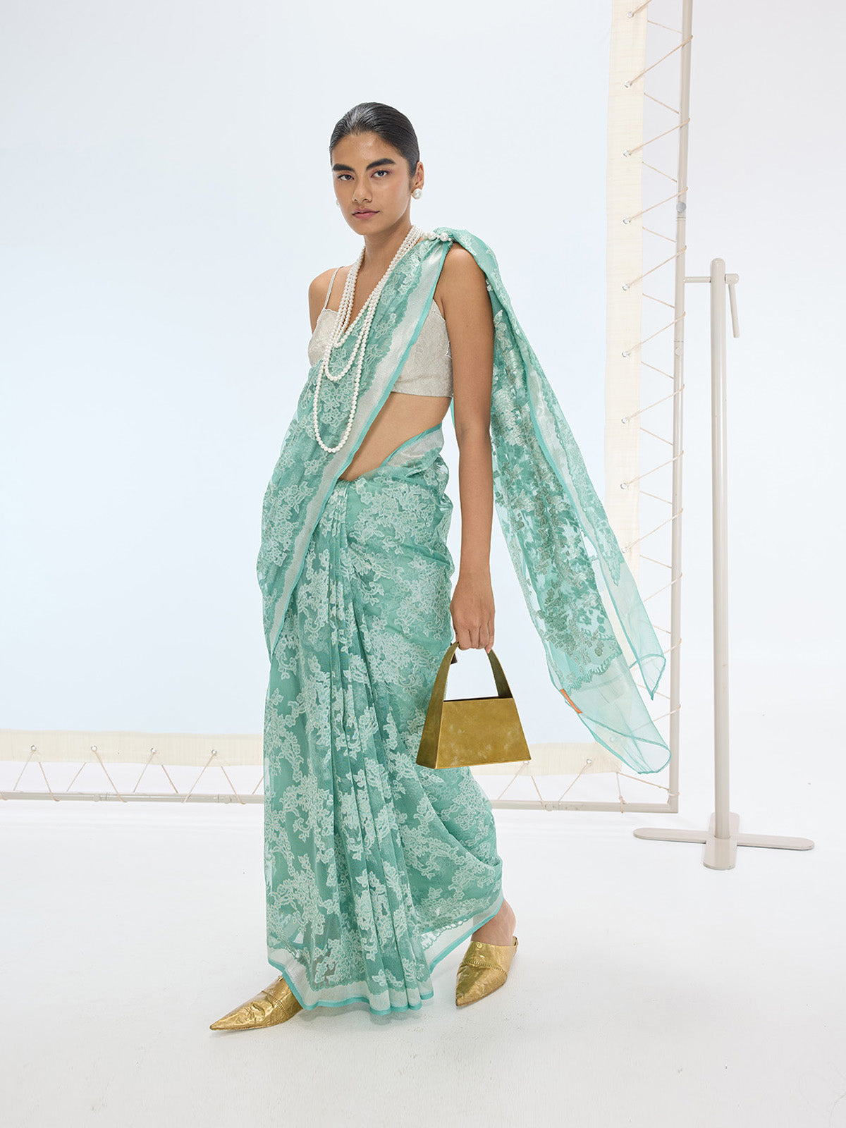 Home / Shop By - Blue / The Sasha Saree In Turquoise Blue