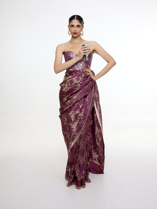 Pre Draped Handwoven Chestnut Mashroo Silk Saree