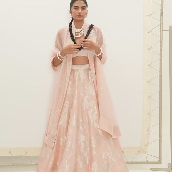 Part of Ekaya Pastels—where timeless Banarasi artistry meets delicate French-inspired elegance—the Mia Lehenga Set brings a refreshing, modern softness to traditional craft.