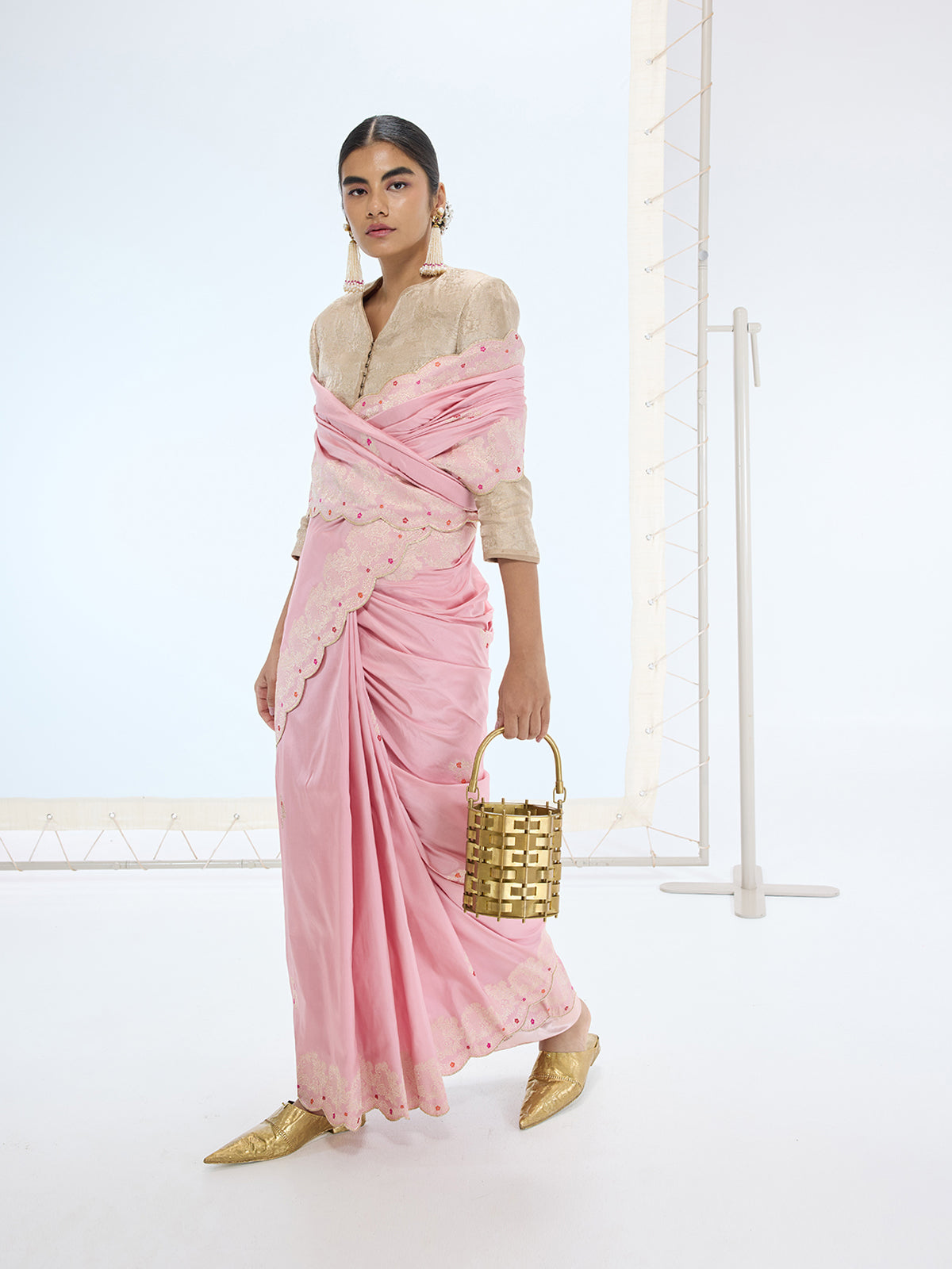 Saree pleats are neatly stitched in place for quick and easy draping.