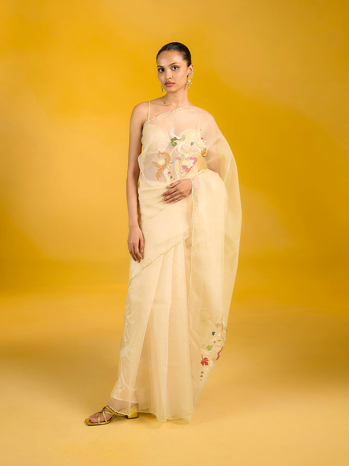 All Ekaya products are made exclusively from pure, high-quality materials, including silks, georgette, chiffon, tissue silk, and organza. Each fabric is carefully selected to ensure luxury, drape, and comfort, reflecting the brand’s commitment to craftsmanship and detail.