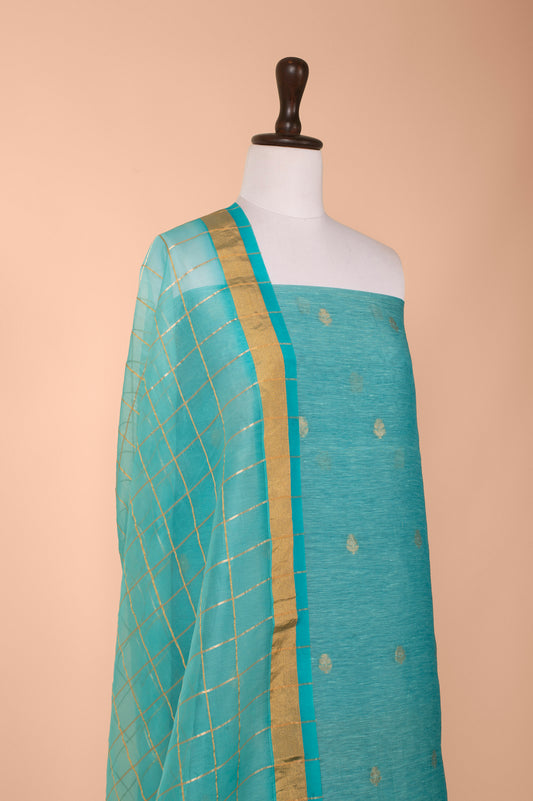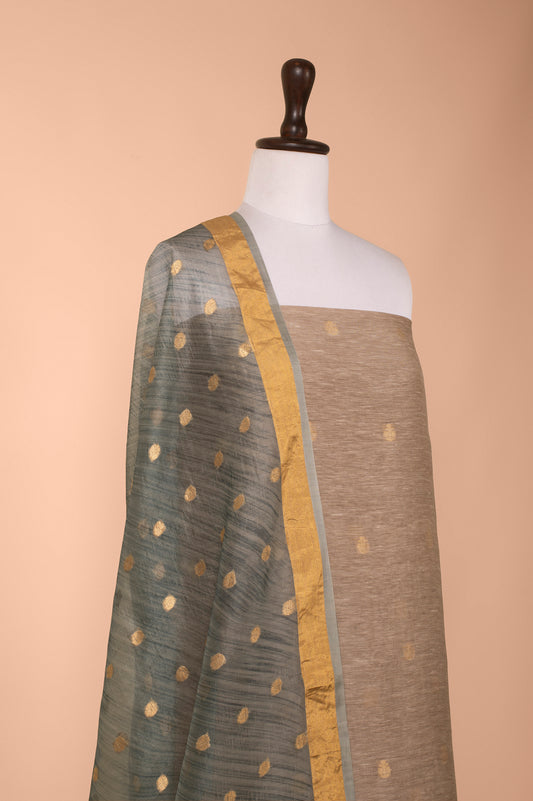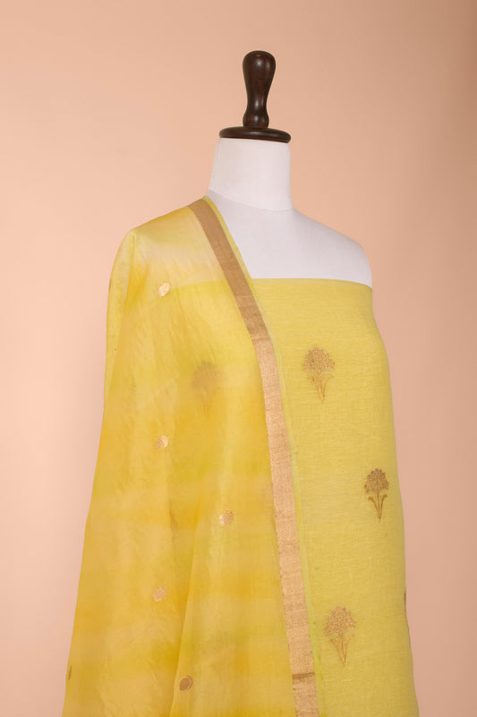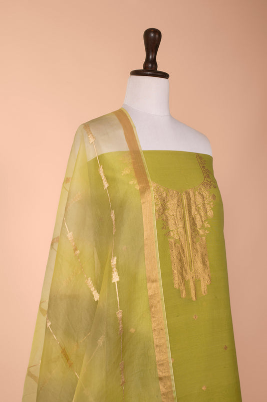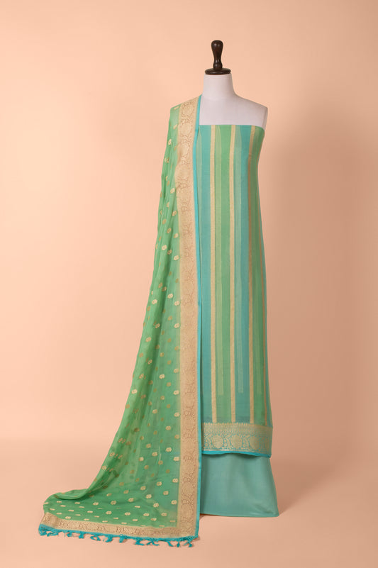 Typically, the unstitched suit fabric comes in a set that includes material for the kameez (top), salwar (bottom), and dupatta (scarf). Ensure to check the length of each fabric piece in the set.