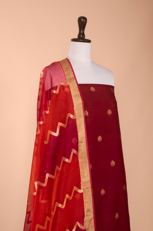 An unstitched suit fabric refers to the raw material provided for a salwar suit that hasn't been tailored or shaped into a finished garment. It allows buyers the flexibility to customize the fit and design according to their preferences.