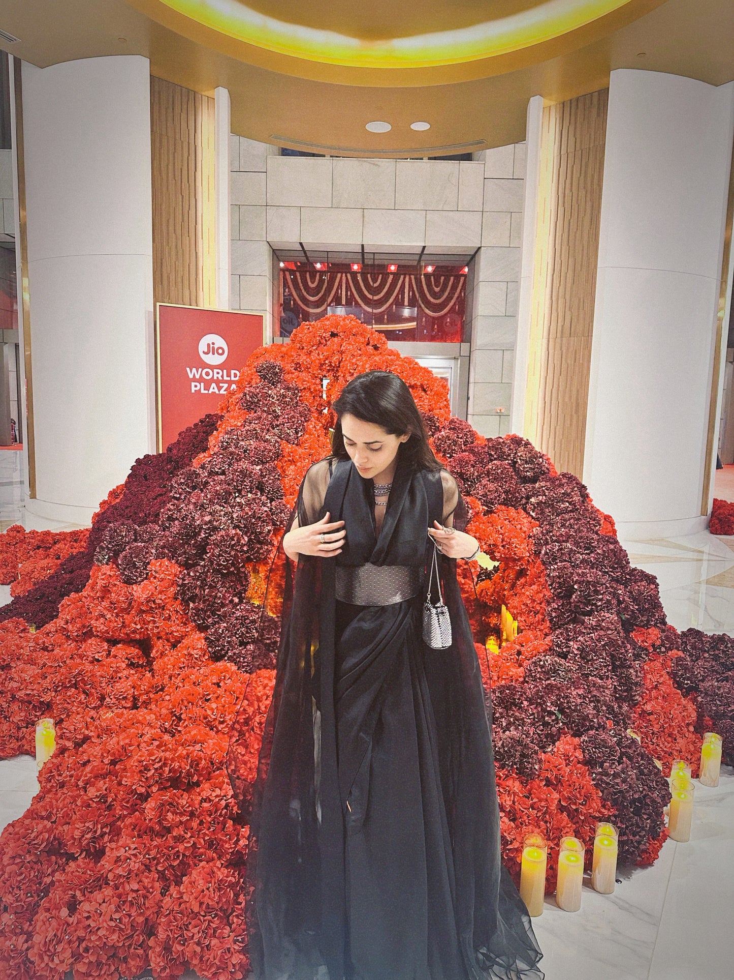 An easy to drape, transeasonal sari in charcoal black that can seamlessly flow from your everyday outfitting to evenings of celebration. Play up the lightweight silk with a statement blouse or a tonal cape for a striking ensemble that commands attention. The sari comes with unstitched blouse fabric. To purchase the blouse as seen on the model, or any other customisations, please get in touch with our style advisors at +91 95606 50774.