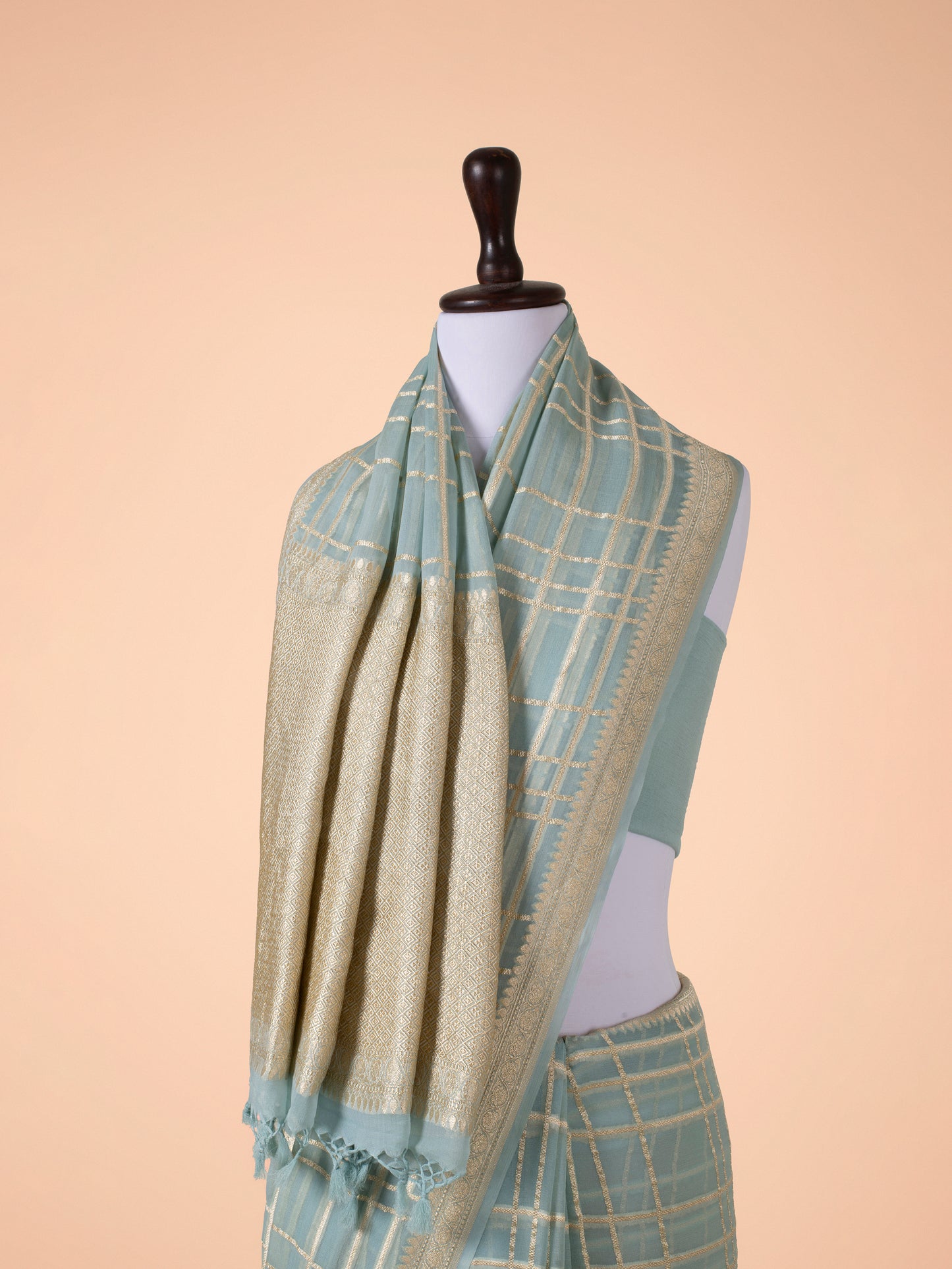 Home / SUMMER ESSENTIALS / Handwoven Aqua Green Georgette Saree