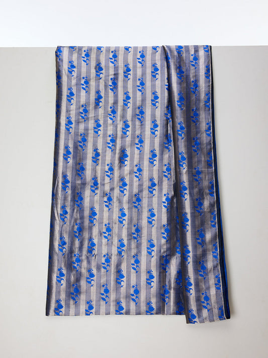 Handwoven Aqua & Grey Tanchoi Banarasi Fabric