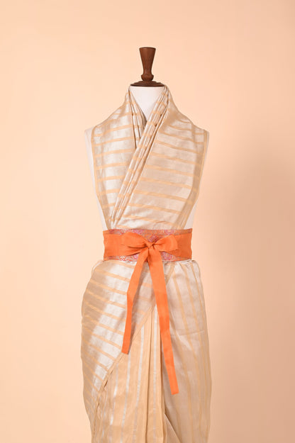 Our orange silk belt has been skillfully handwoven by our weavers in banaras. It features eye-catching details and colour. Knot it around your favourite sari for a more cinched look or tie it around a jacket.