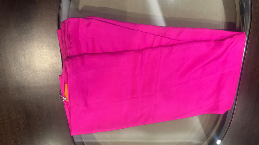 An easy to drape, transeasonal sari in Fuschia pink that can seamlessly flow from your everyday outfitting to evenings of celebration. Play up the lightweight Organza with a statement blouse or a tonal cape for a striking ensemble that commands attention. The sari comes with unstitched blouse fabric. To purchase the blouse as seen on the model, or any other customisations, please get in touch with our style advisors at +91 95606 50774.