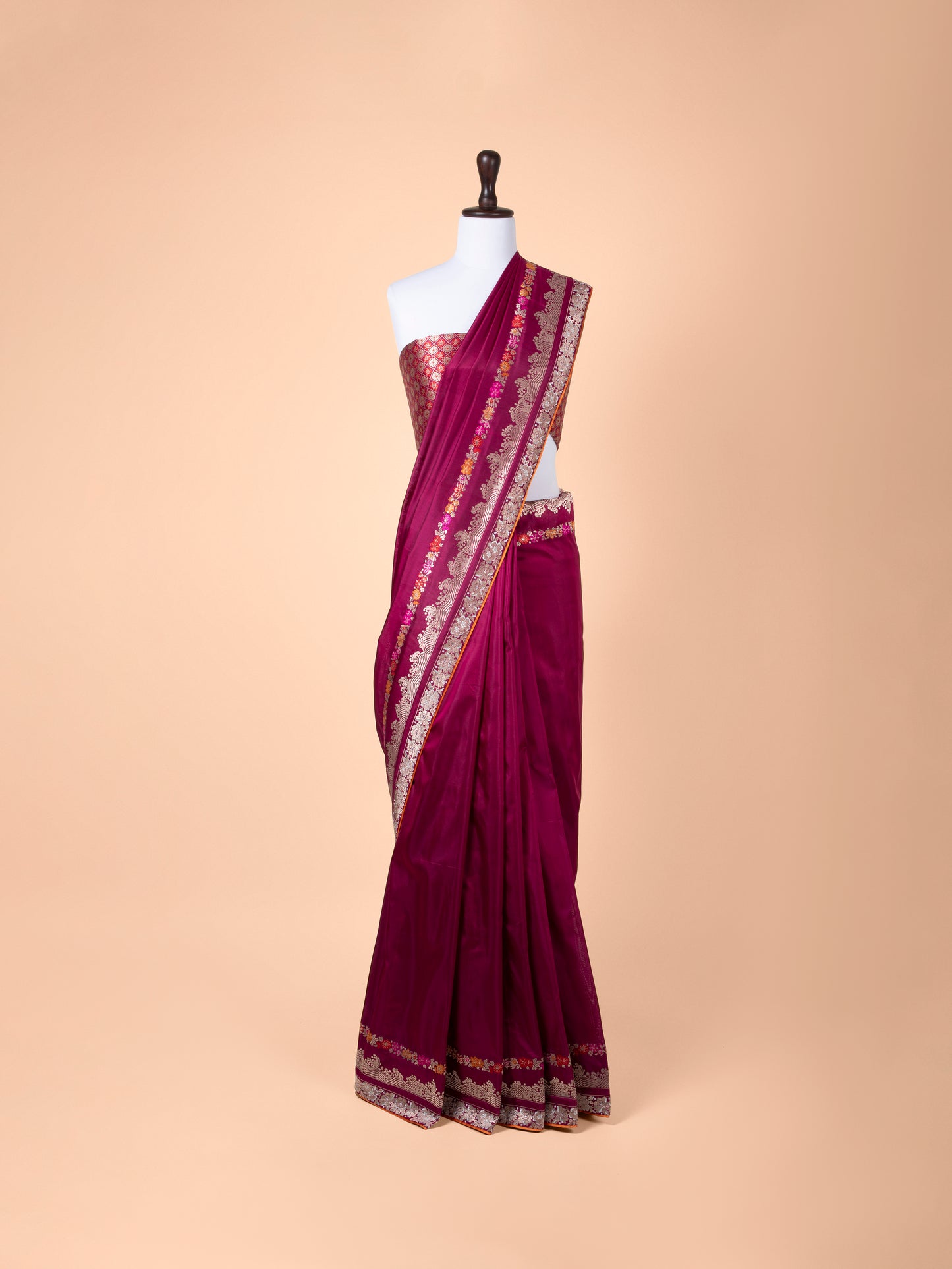 Saree pleats are neatly stitched in place for quick and easy draping.