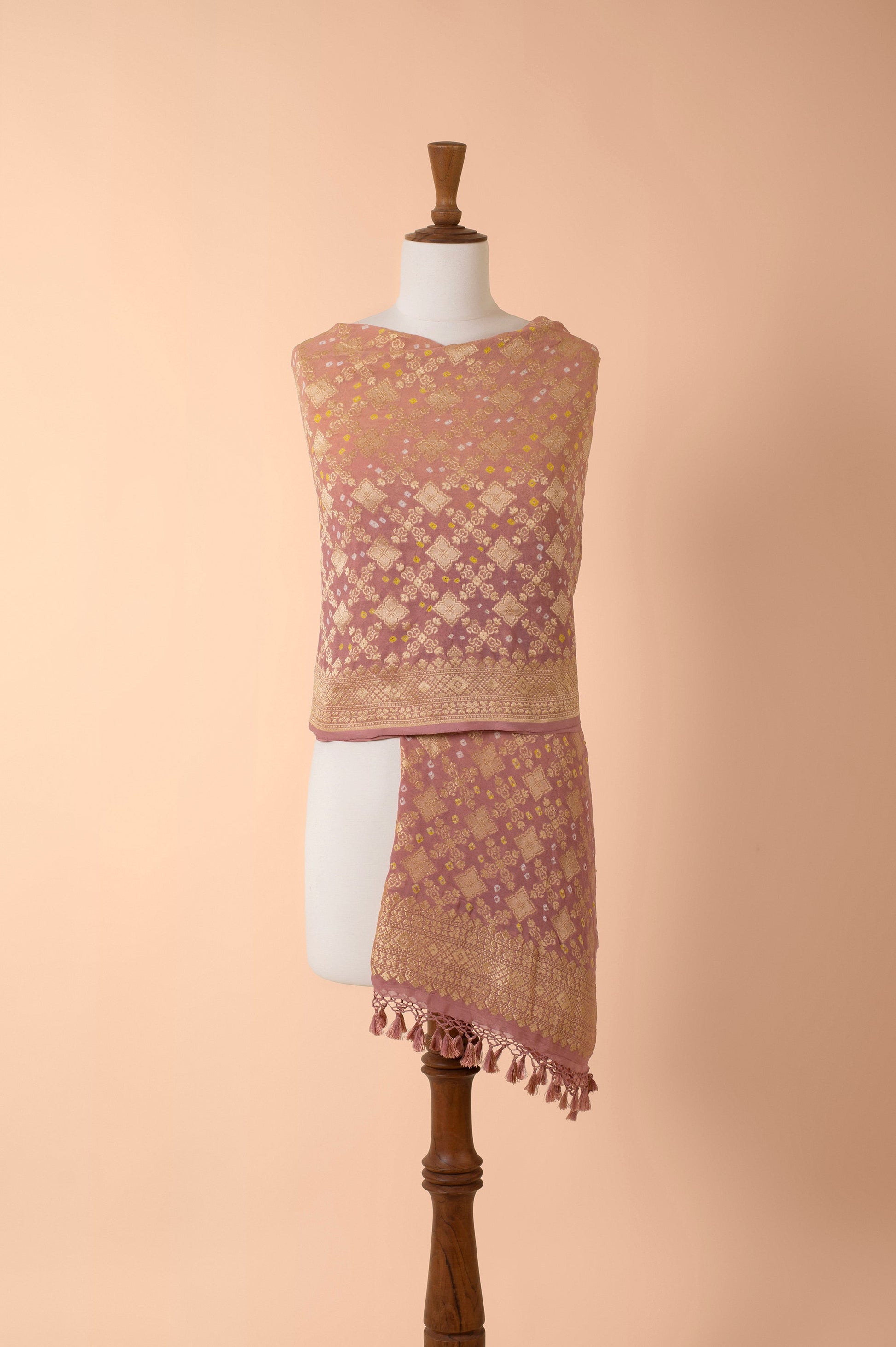 This Handwoven pink bandhani dupatta has been skillfully woven by our artisans in Banaras. It is a colorful dupatta with intricate hand done design that renders it perfect for any day event.