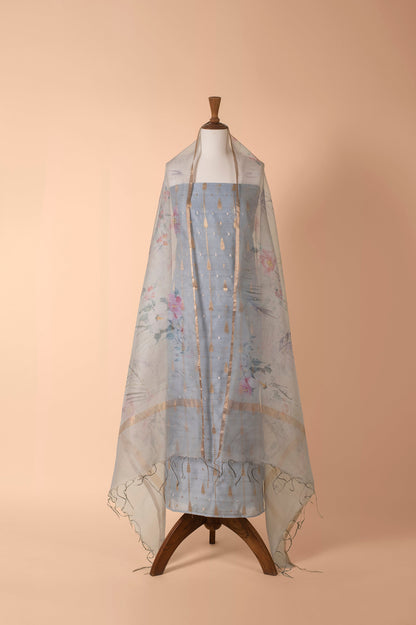 This Handwoven Green Chanderi Suit is the best addition to your summer wardrobe. The intricate floral pattern on the dupatta elevates the daytime look. Perfect for Wedding Functions and Festivals, this piece is handwoven in Banaras.