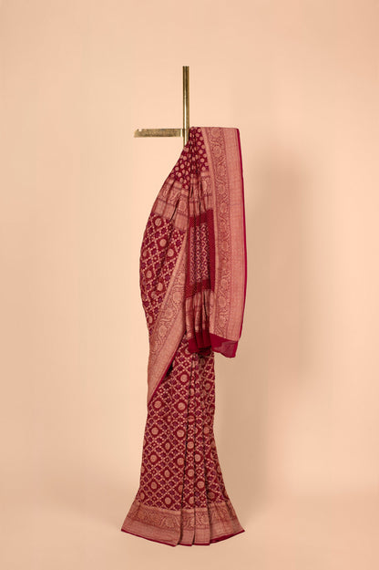 Handwoven Maroon Bandhani Sari