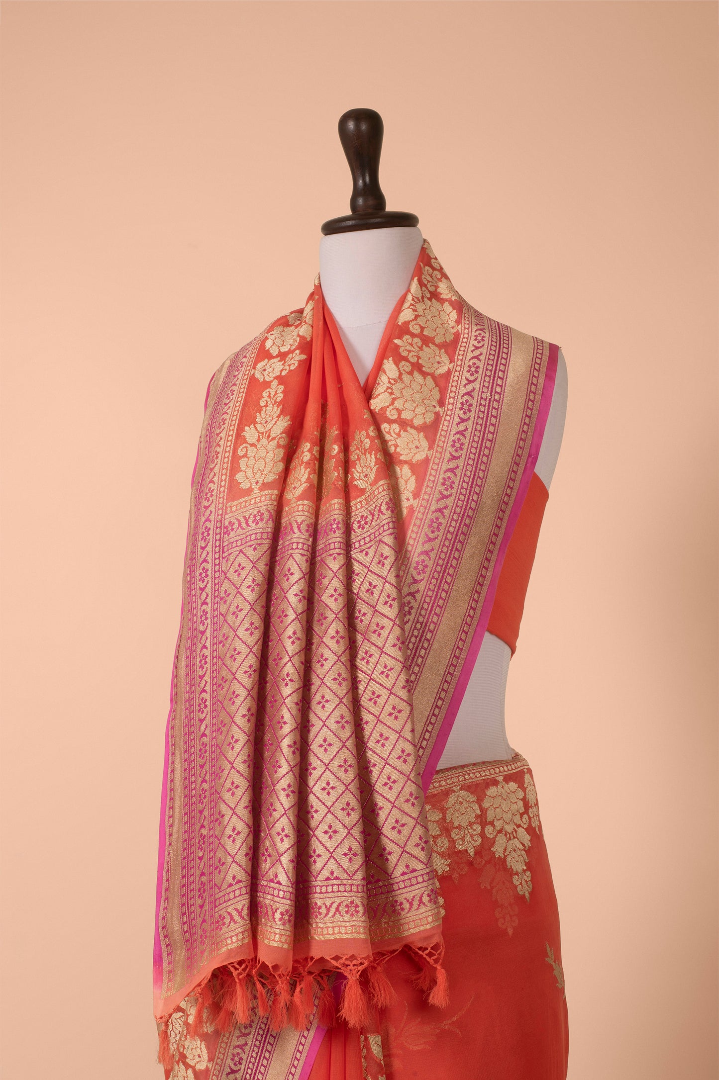 Handwoven Orange Georgette Saree