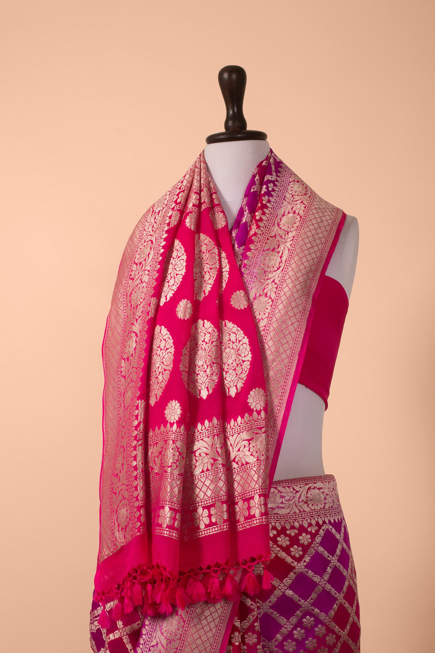 Handwoven Pink and Purple Georgette Saree