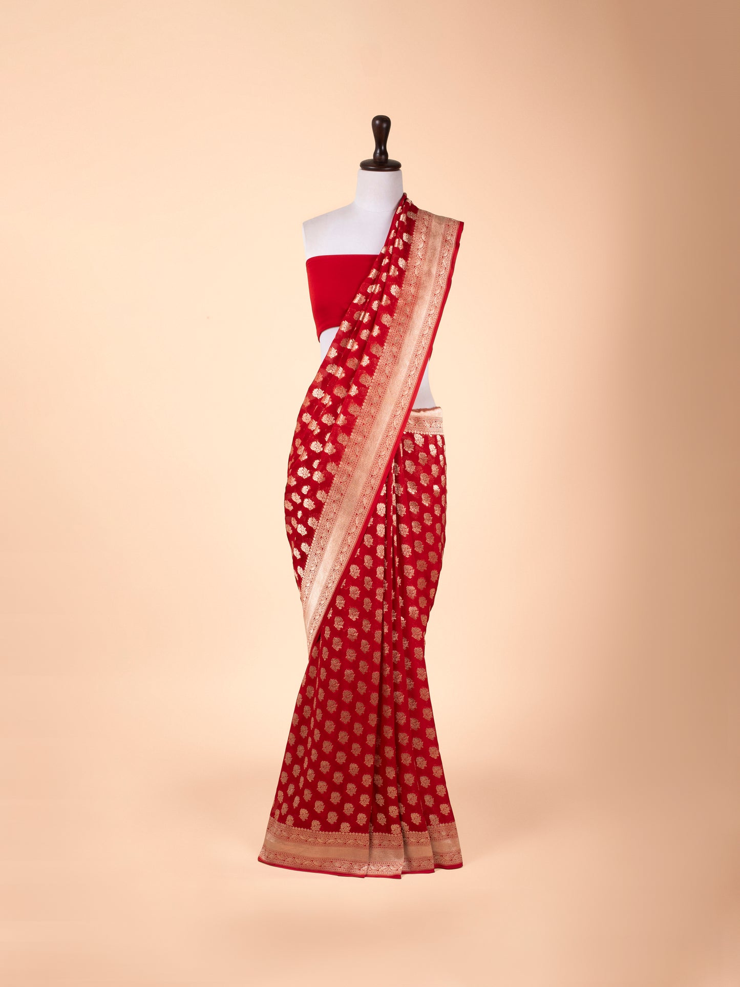 Saree pleats are neatly stitched in place for quick and easy draping.