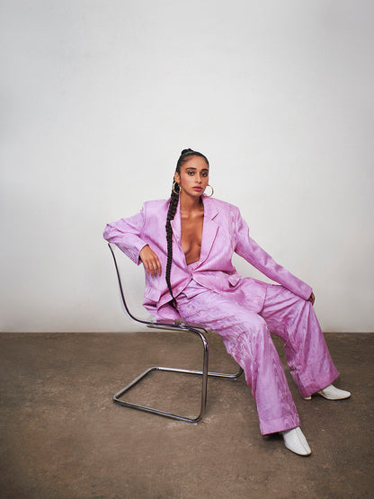 The Thaan trouser presents a mid rise waist, wide legs and front slant and back welt pockets. Wear as statement bottoms or pair with a complementary jacket for a stylish pairing.